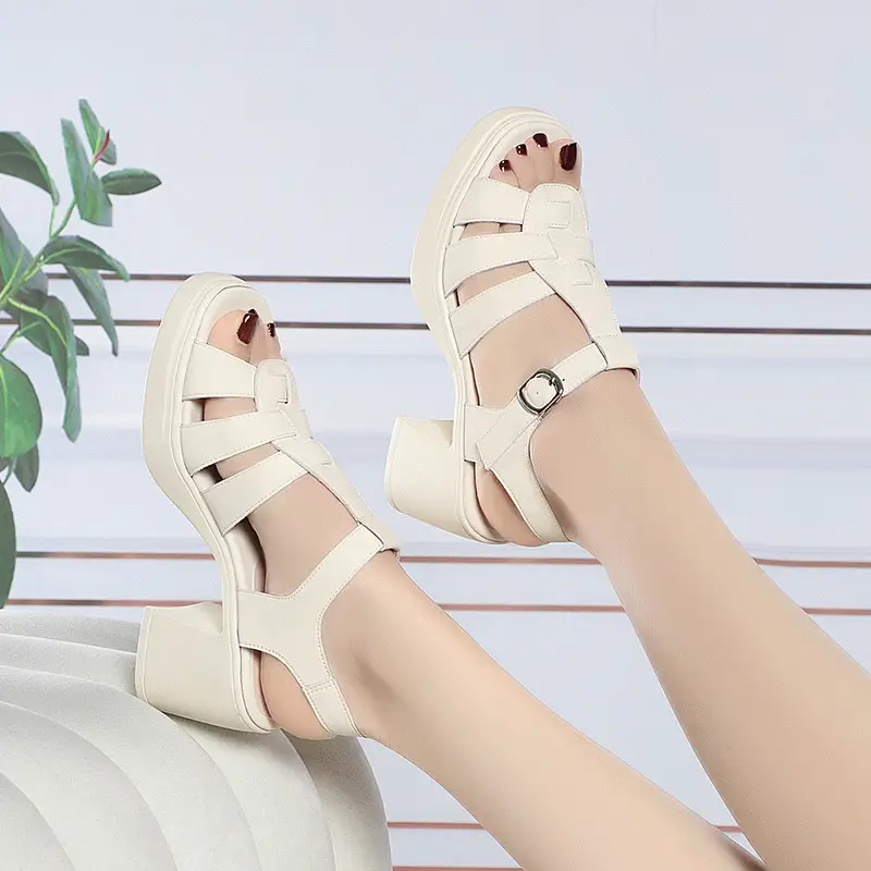 Thick Heel Sandals Soft Sole Shoes For Women Open Toe Roman Shoes