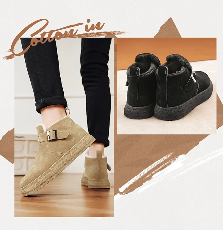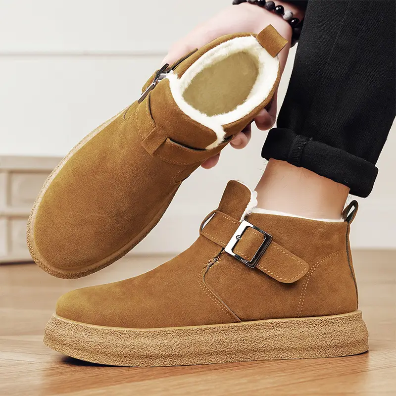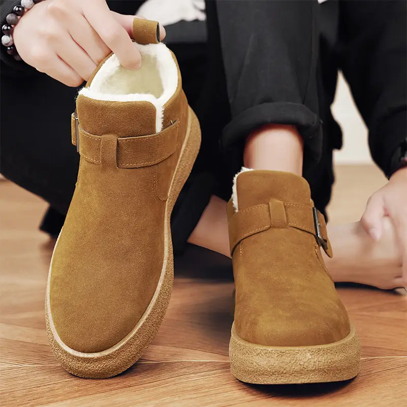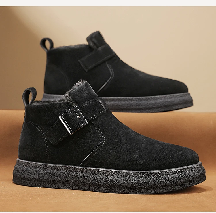 High-top Men's Shoes Keep Warm Snow Boots Men Fur Cotton Shoes Men Suede Slip-On Ankle Boots