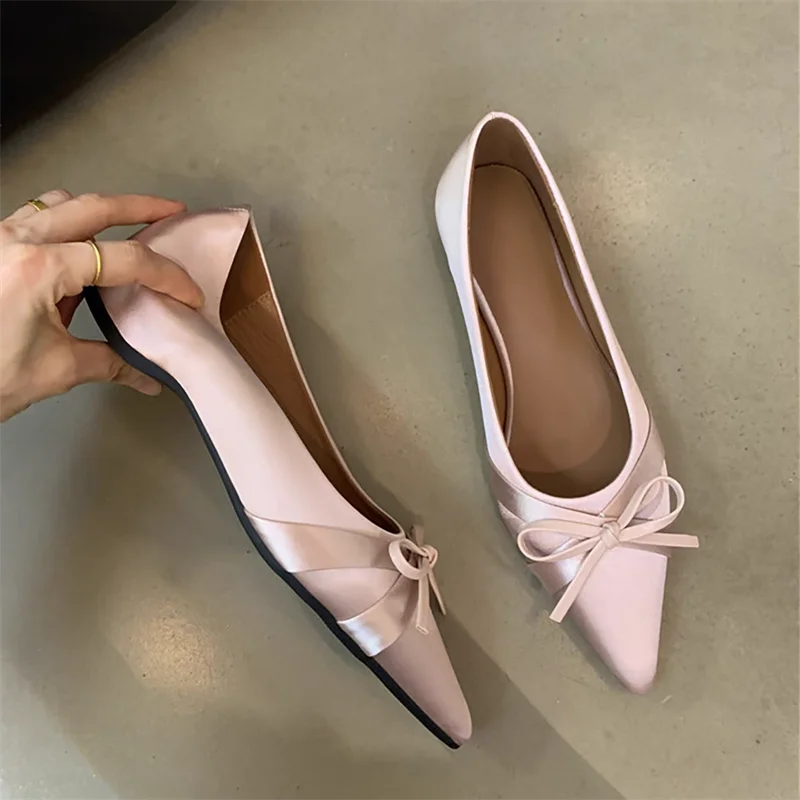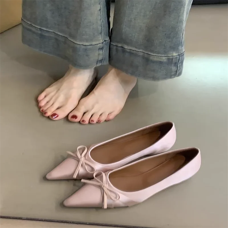 Pointed-Toe Bow-Adorned Stylish And Comfortable Flat Shoes