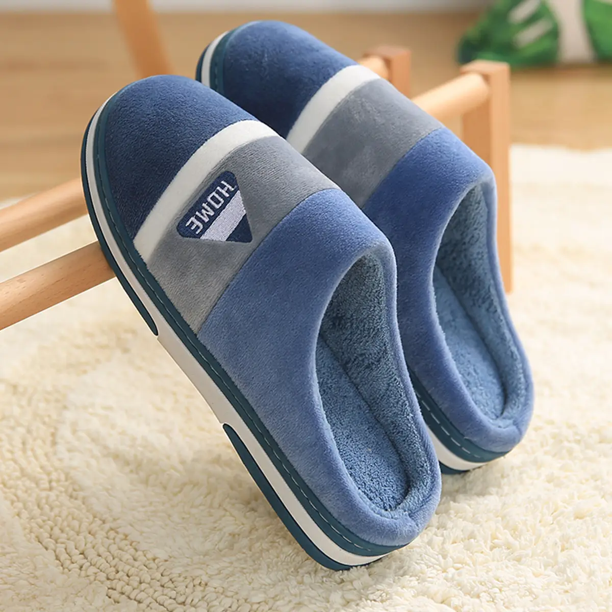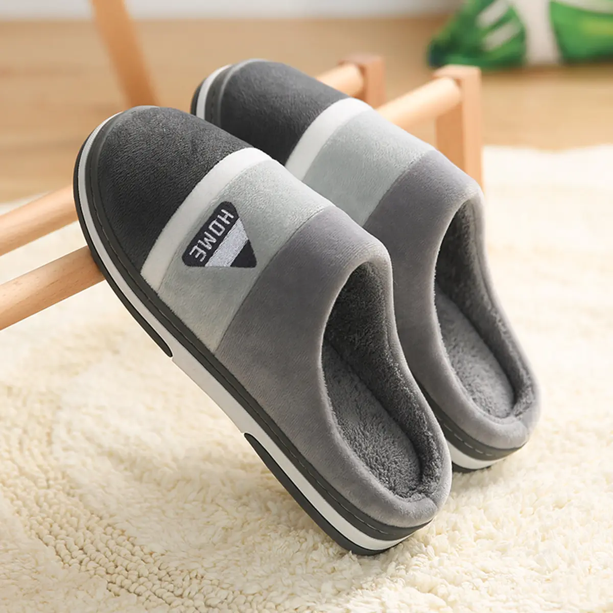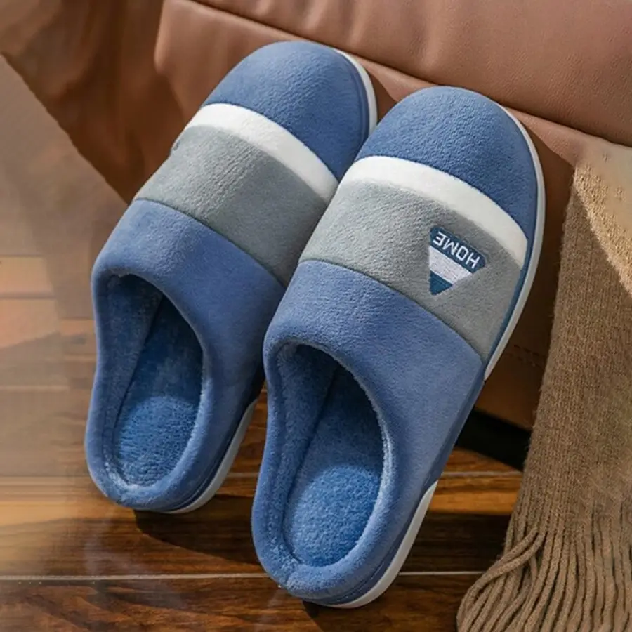 Men's Cotton Slippers Home Warm Indoor Non-Slip Thick-Soled Plush