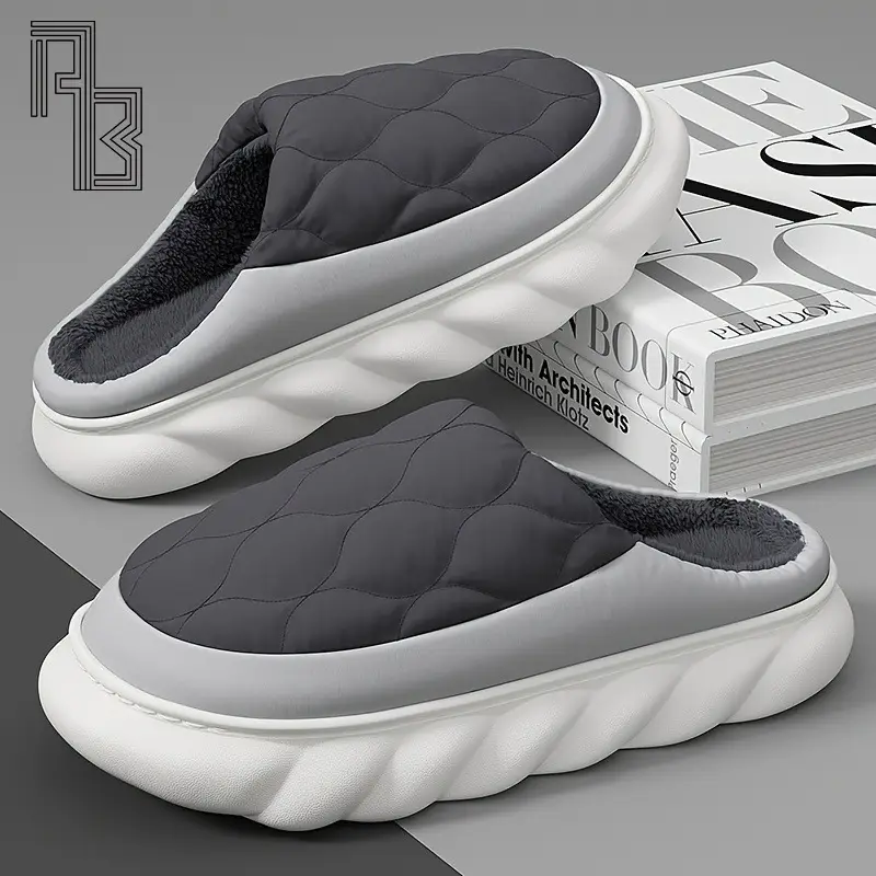 Fashionable Cotton Slippers for Men Indoor Home Anti Slip Thick Bottom Down Slippers