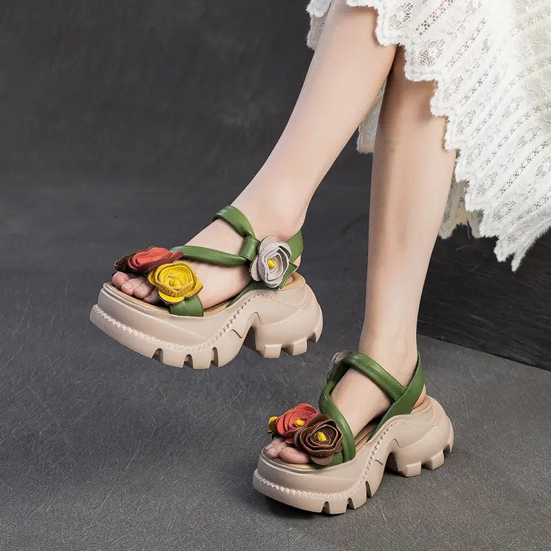Genuine Leather Platform Women Flower Sandals Shoes
