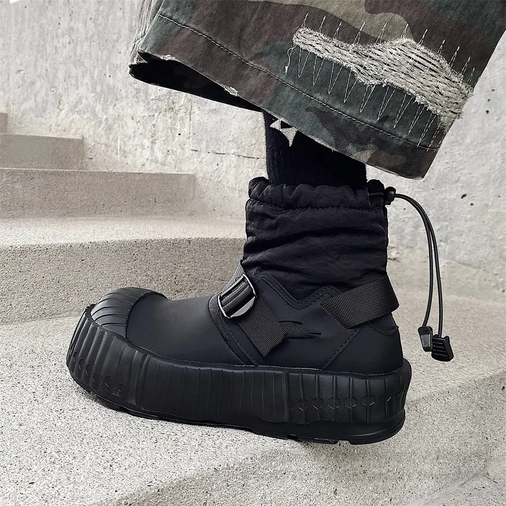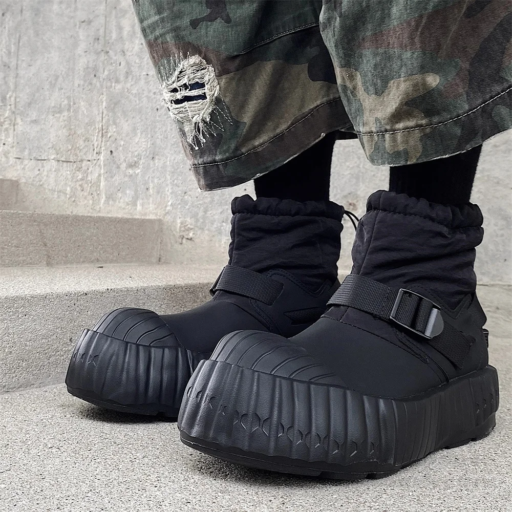 Plush Warm Snow Boots Men Round Toe Thick Heel Casual Solid Color Elasticity Boot Male Cotton Shoes